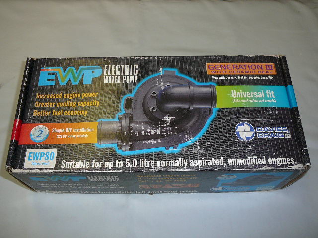 New, unused Davies Craig electric water pump . . . will suit a multitude of applications or vehicles. Comes with all that is necessary to fit including wiring loom and relay, various adapters to suit different radiator hose sizes etc.